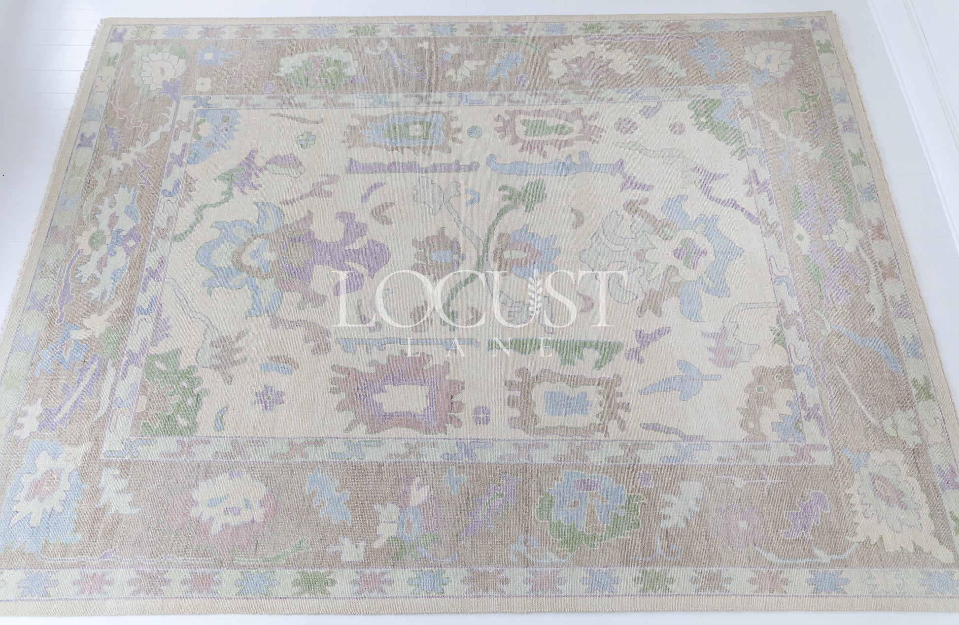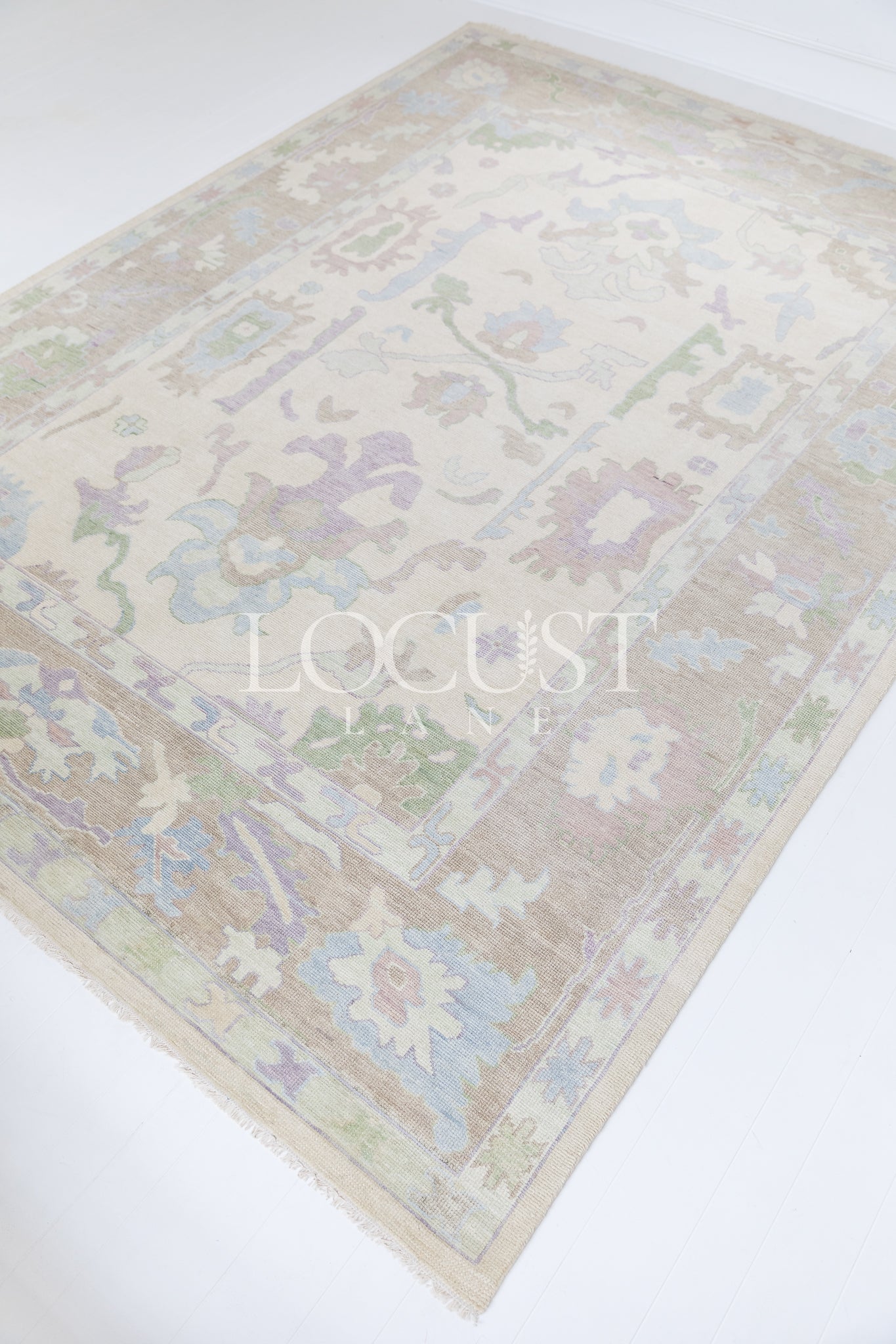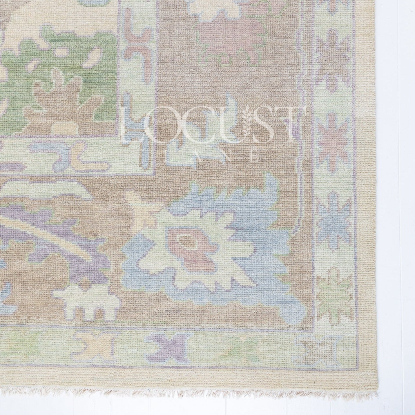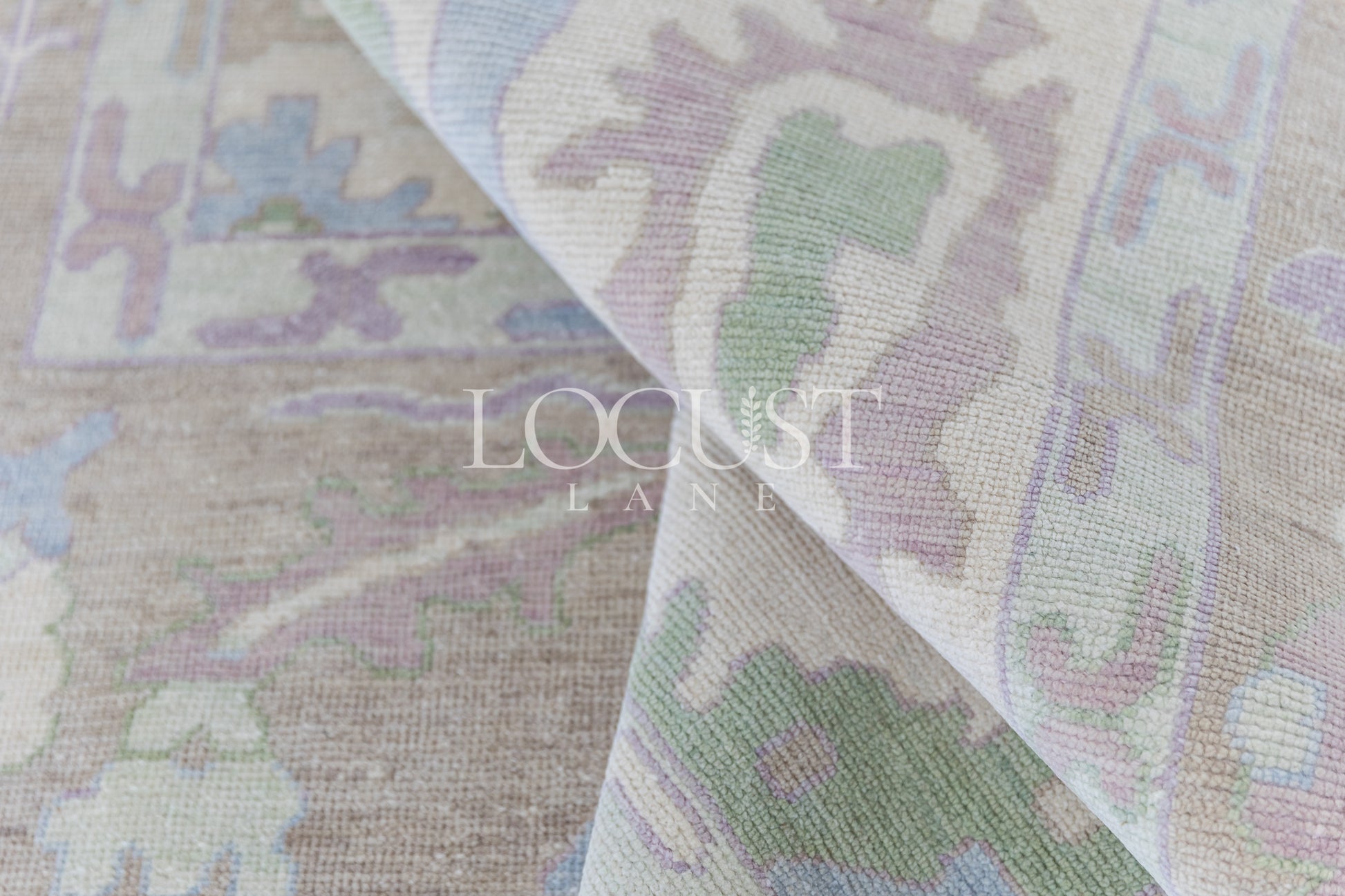 Soft and whimsical, Alice is a watercolor dream woven into wool. Gentle washes of lavender, sky blue, mint, and blush dance across a warm taupe base, creating a design that feels airy yet grounded. The muted, painterly palette gives it a romantic, timeworn elegance—perfect for those who love a touch of color without overwhelming their space.