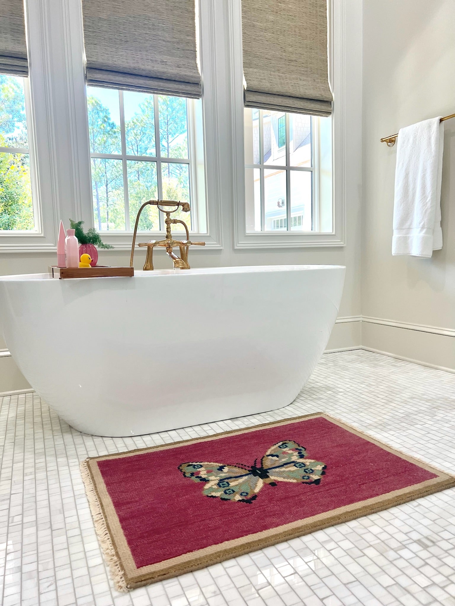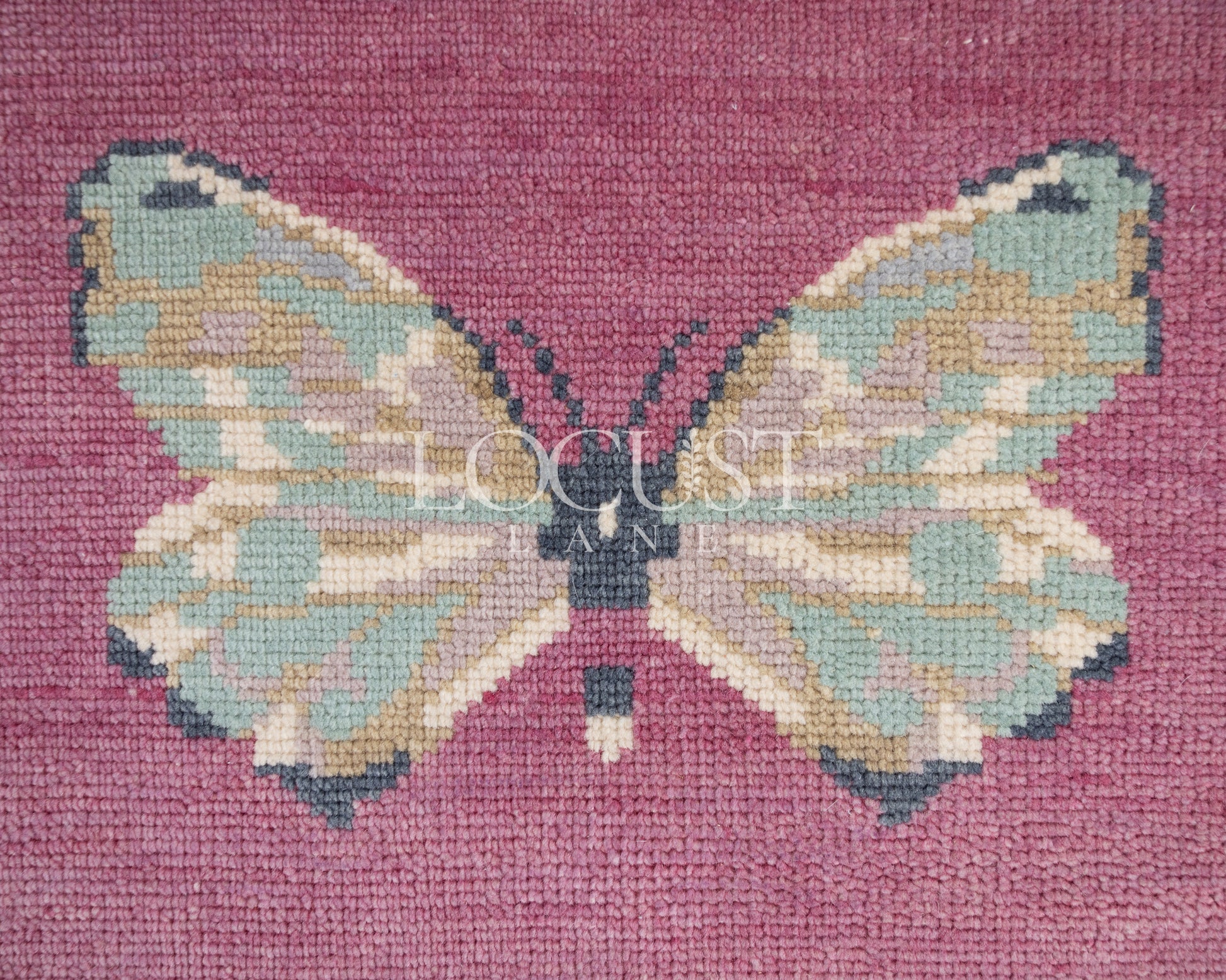 The Magenta Butterfly Mini is artful and unexpected — hand-knotted from wool and featuring a detailed butterfly motif on a rich magenta field. Petite yet striking, it’s a statement of craftsmanship and color.