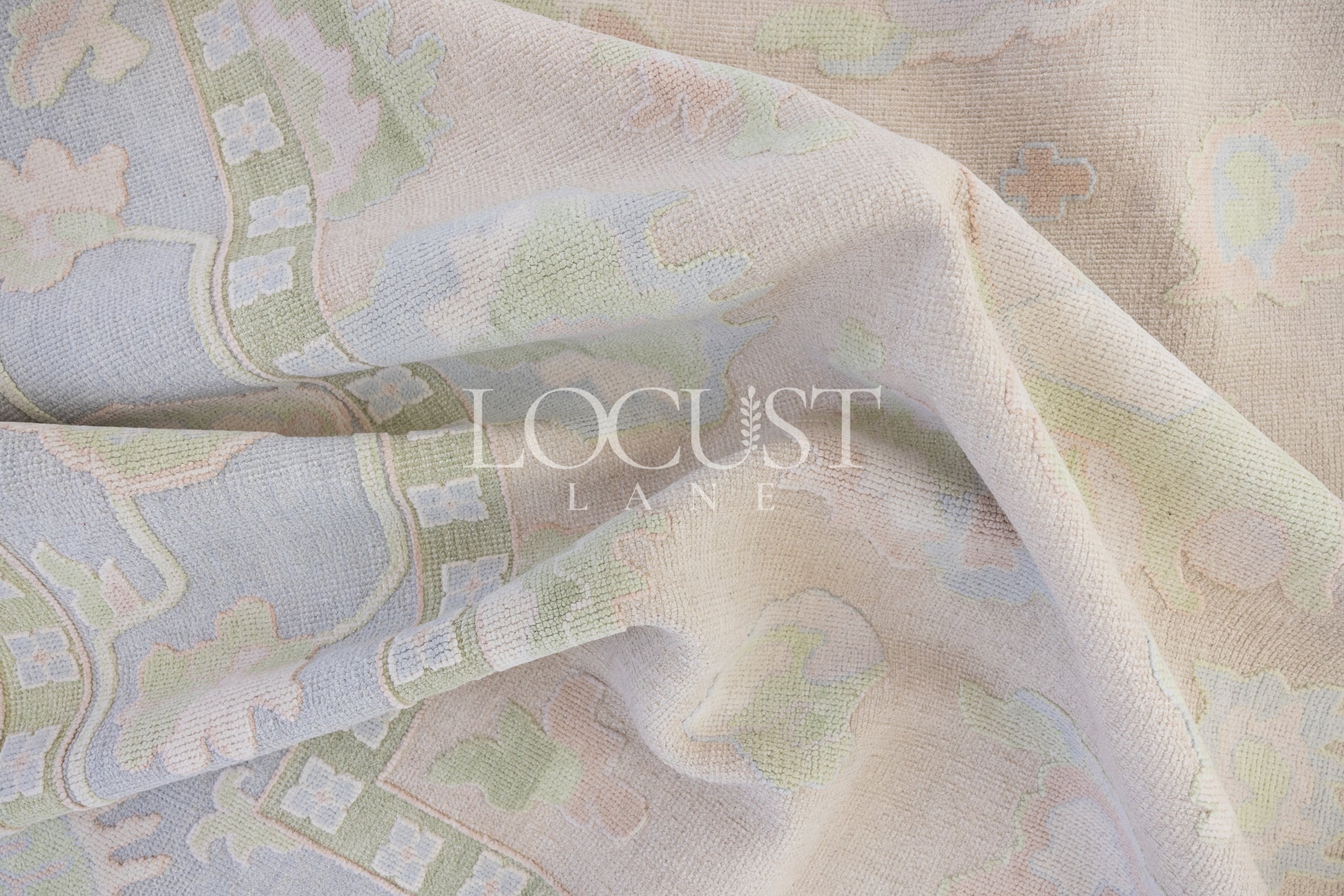 Soft, subtle, and endlessly versatile, the Daisy Embossed Rug is a refined foundation piece designed to bring quiet elegance into any space. Hand-knotted by skilled artisans, this heirloom-quality rug features a neutral beige background embossed with delicate floral motifs in pastel tones of blush, sage, and soft blue. The embossed texture creates a dimensional effect that feels both modern and timeless.