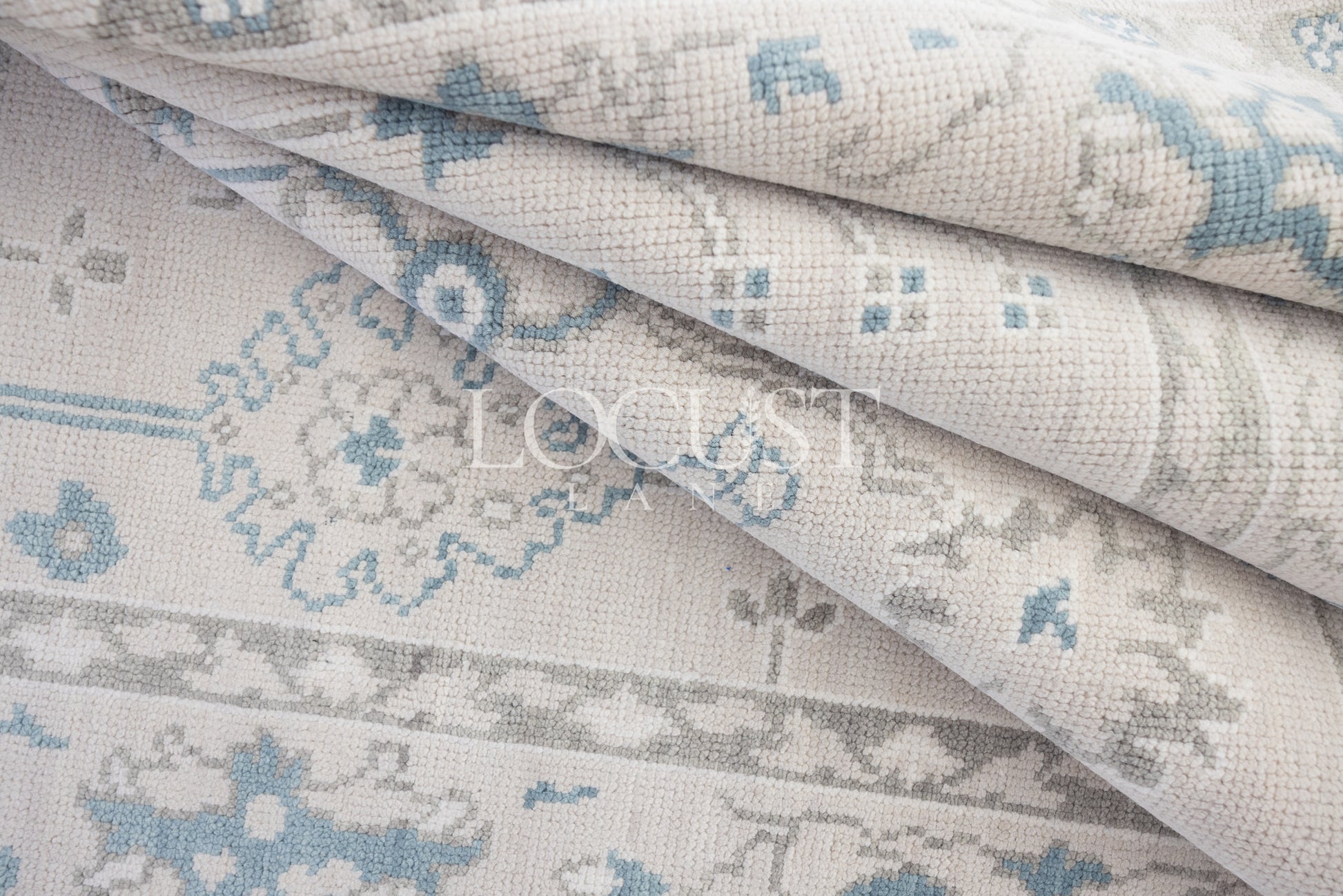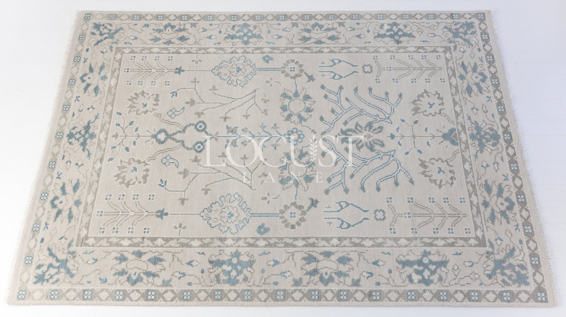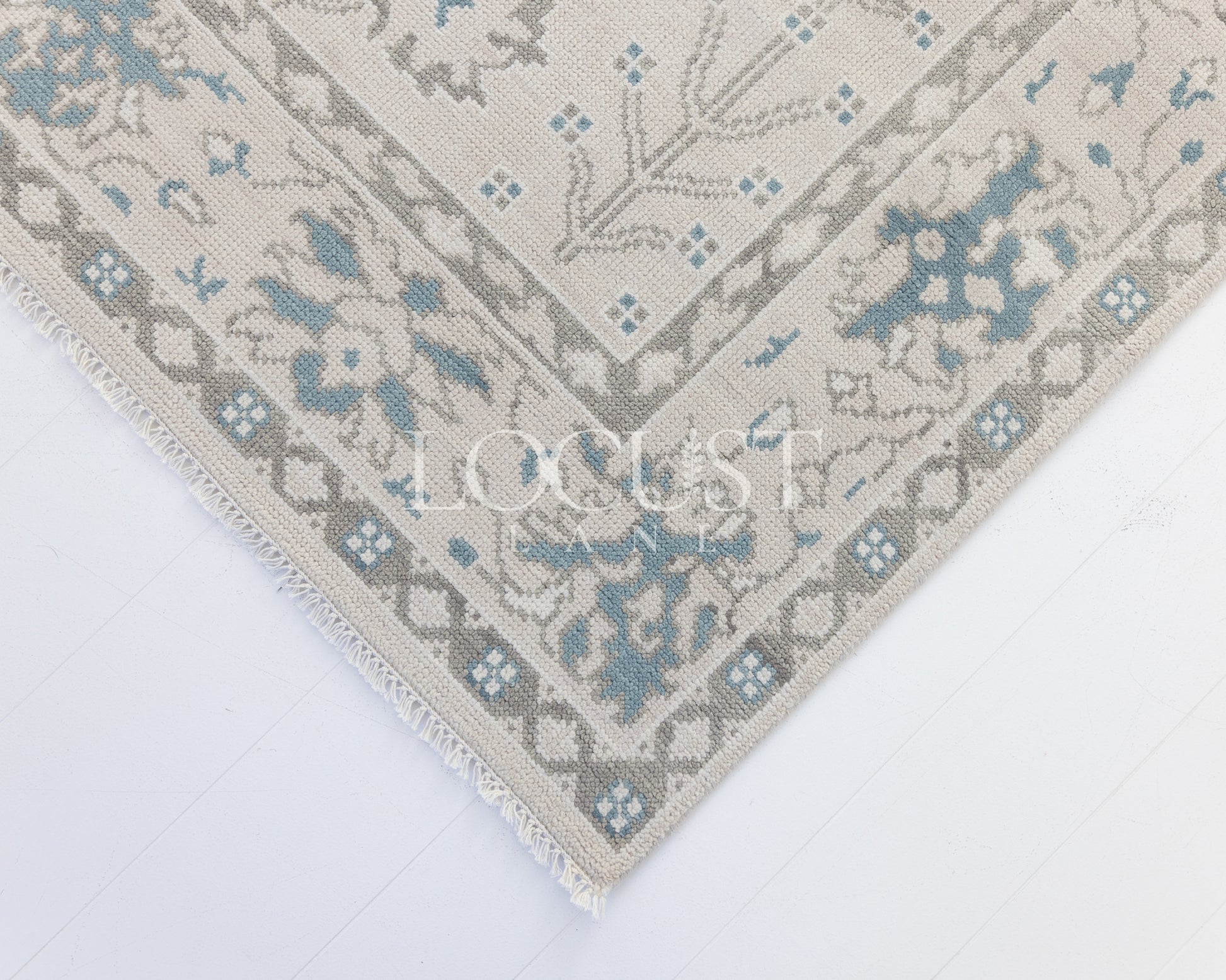 Airy and elegant, the Edith rug captures the essence of relaxed coastal living. Handknotted by skilled artisans, Edith features a light, neutral ground accented with delicate floral motifs in soft sky blue and gentle gray. Its understated palette and graceful pattern make it a versatile choice for beach houses, serene bedrooms, or sun-filled living rooms.