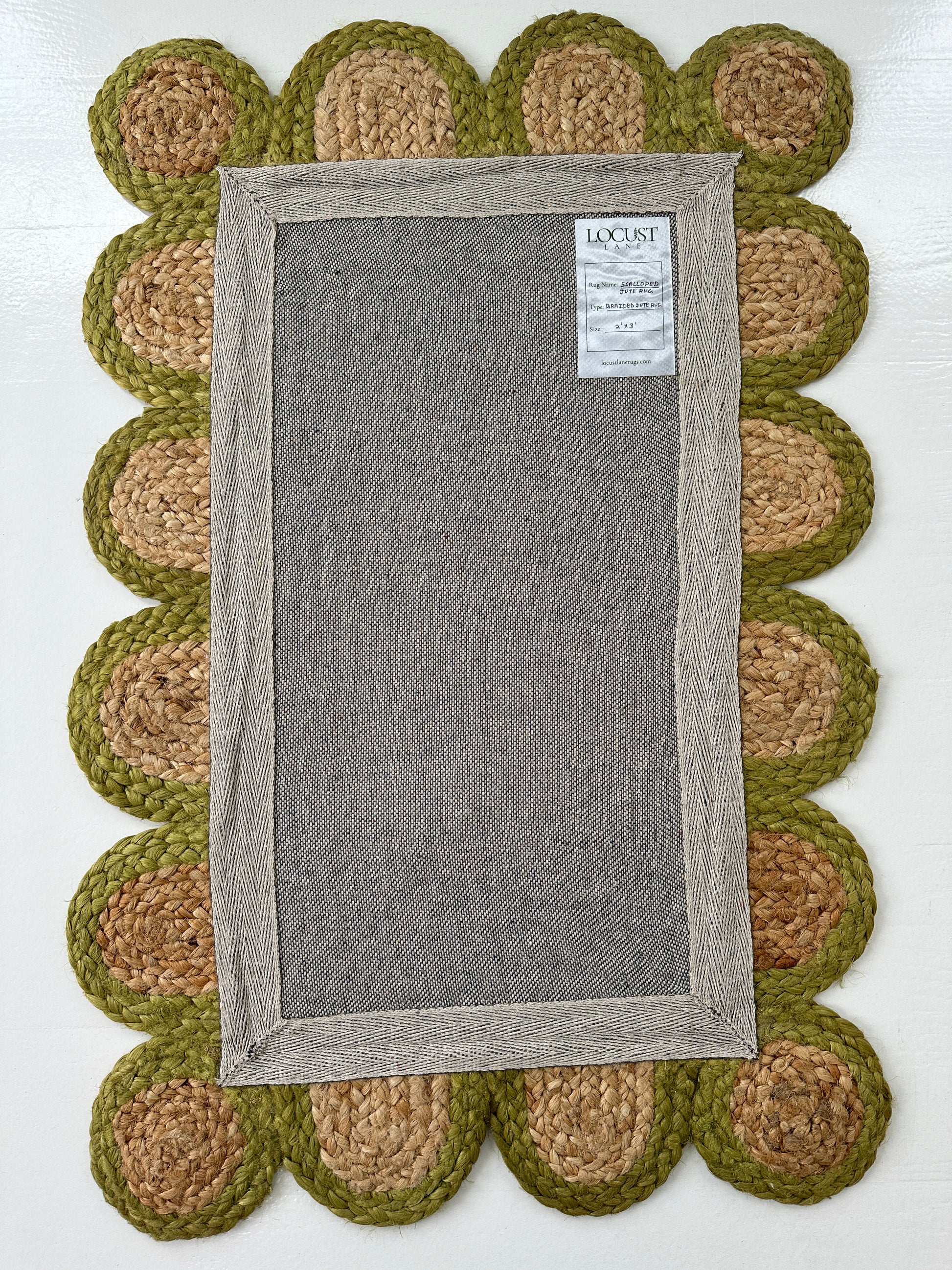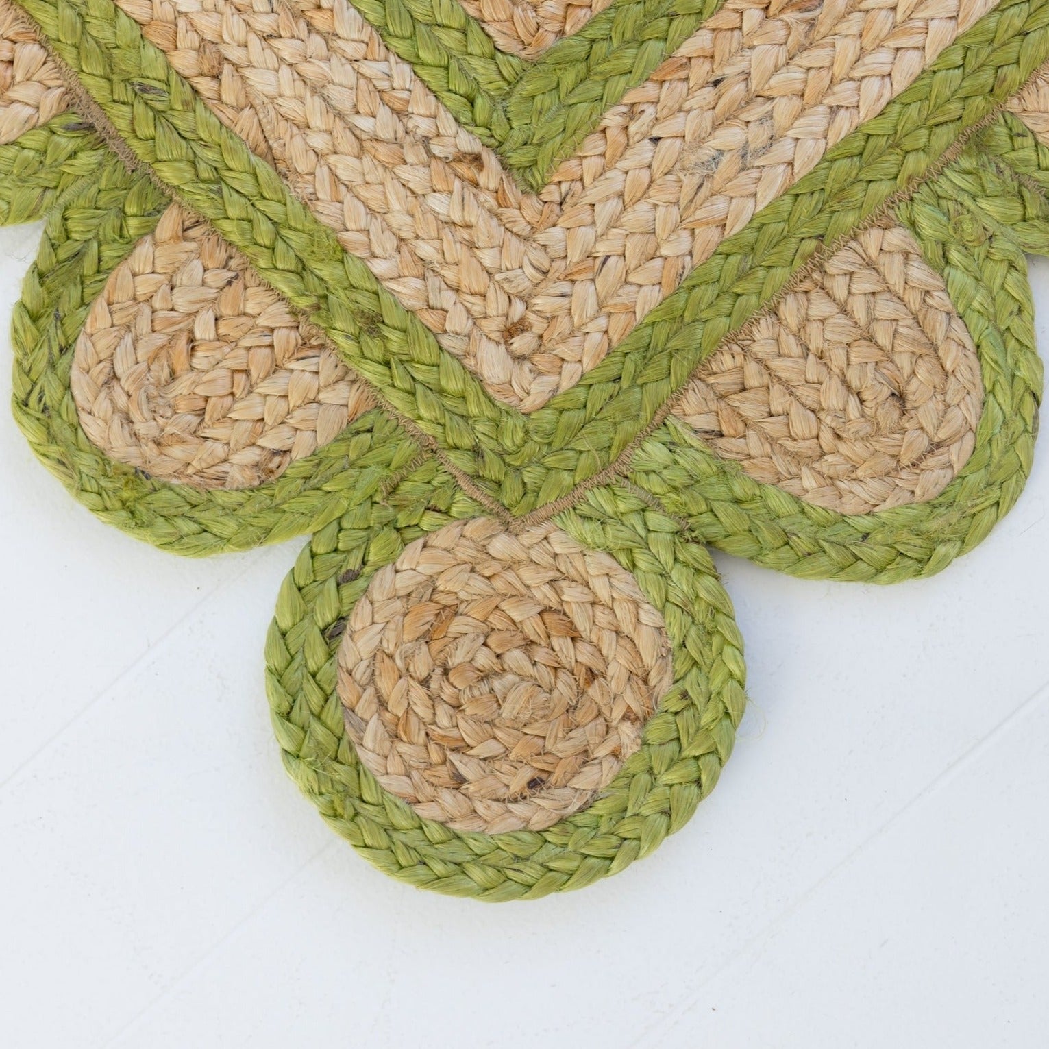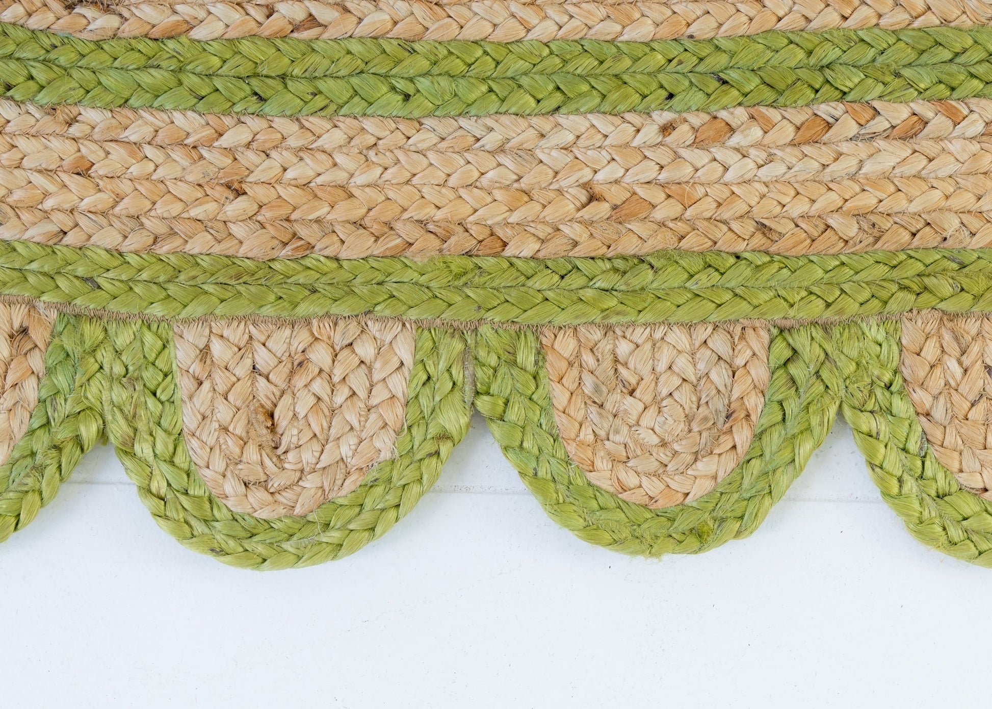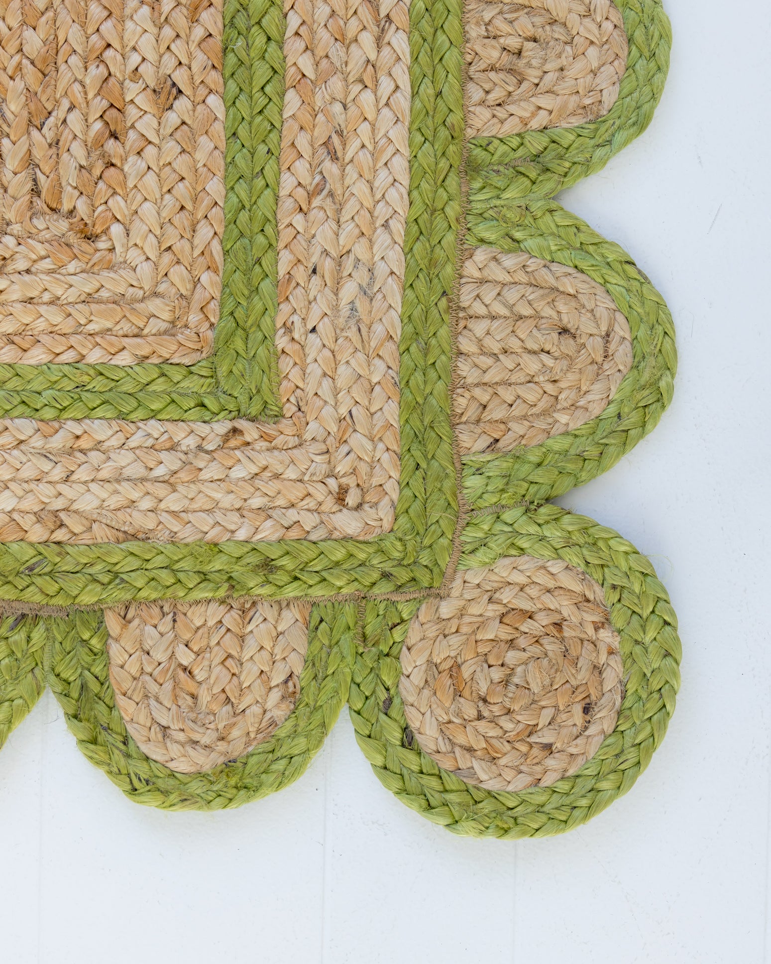 Hand-braided natural jute rug with scalloped grass green border and rectangular center – Grass Green Scalloped Jute Mini Rug by Locust Lane Rugs