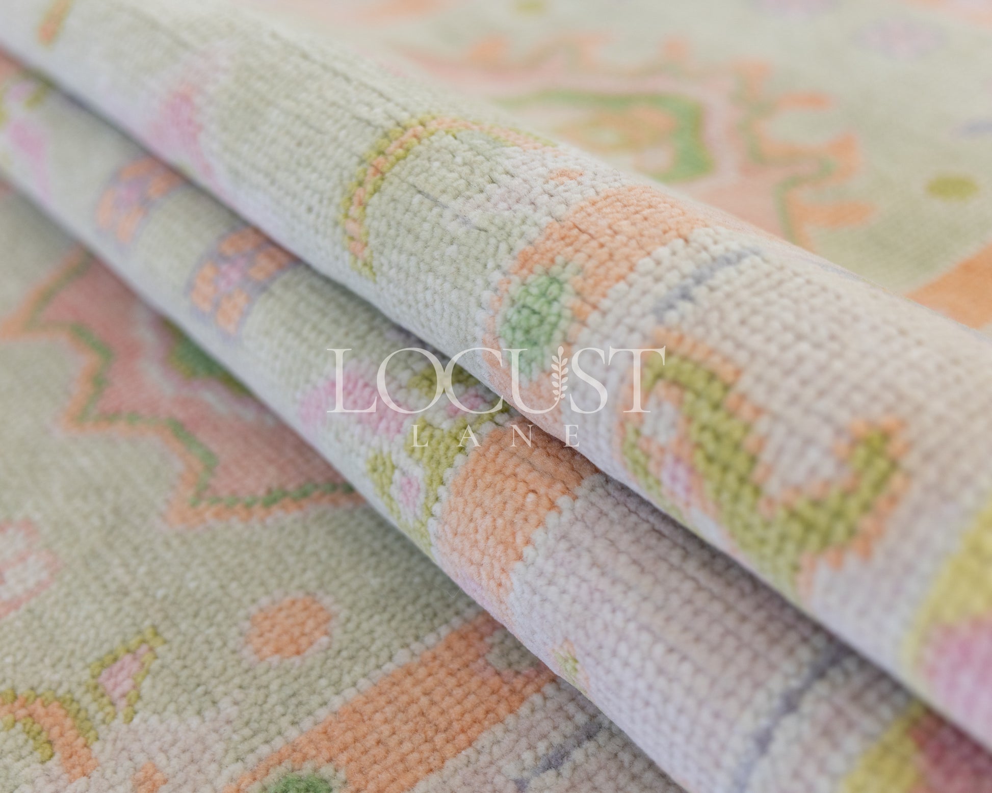 Hill is a playful yet polished statement piece, bringing a fresh burst of color to our Collector’s Edition lineup. Soft pastel tones of peach, blush, butter yellow, mint, and lilac are woven into a geometric-meets-floral pattern, framed by bold medallions and whimsical border motifs. The mint green field sets a calming foundation, while the candy-colored accents dance across the surface like watercolor brushstrokes on a sunny spring day.
