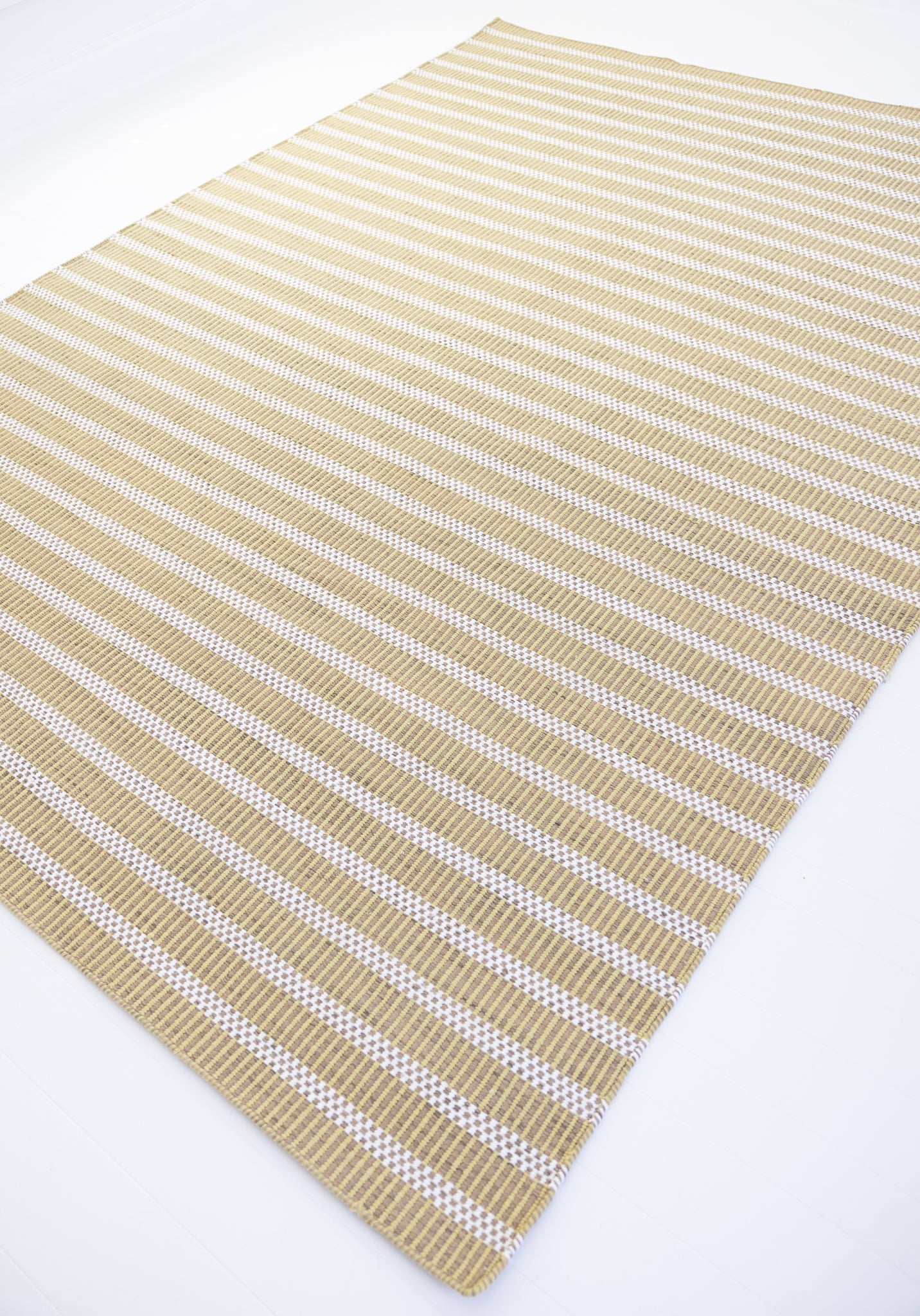 Earthy and elevated, the Martini Olive Rug mixes natural texture with a refreshing twist of green. Handwoven from jute and wool in a classic punja weave, its muted olive stripes are set against warm jute and creamy ivory for a relaxed, organic feel. The no-pile profile makes it a durable choice for layering or solo use in everyday spaces.