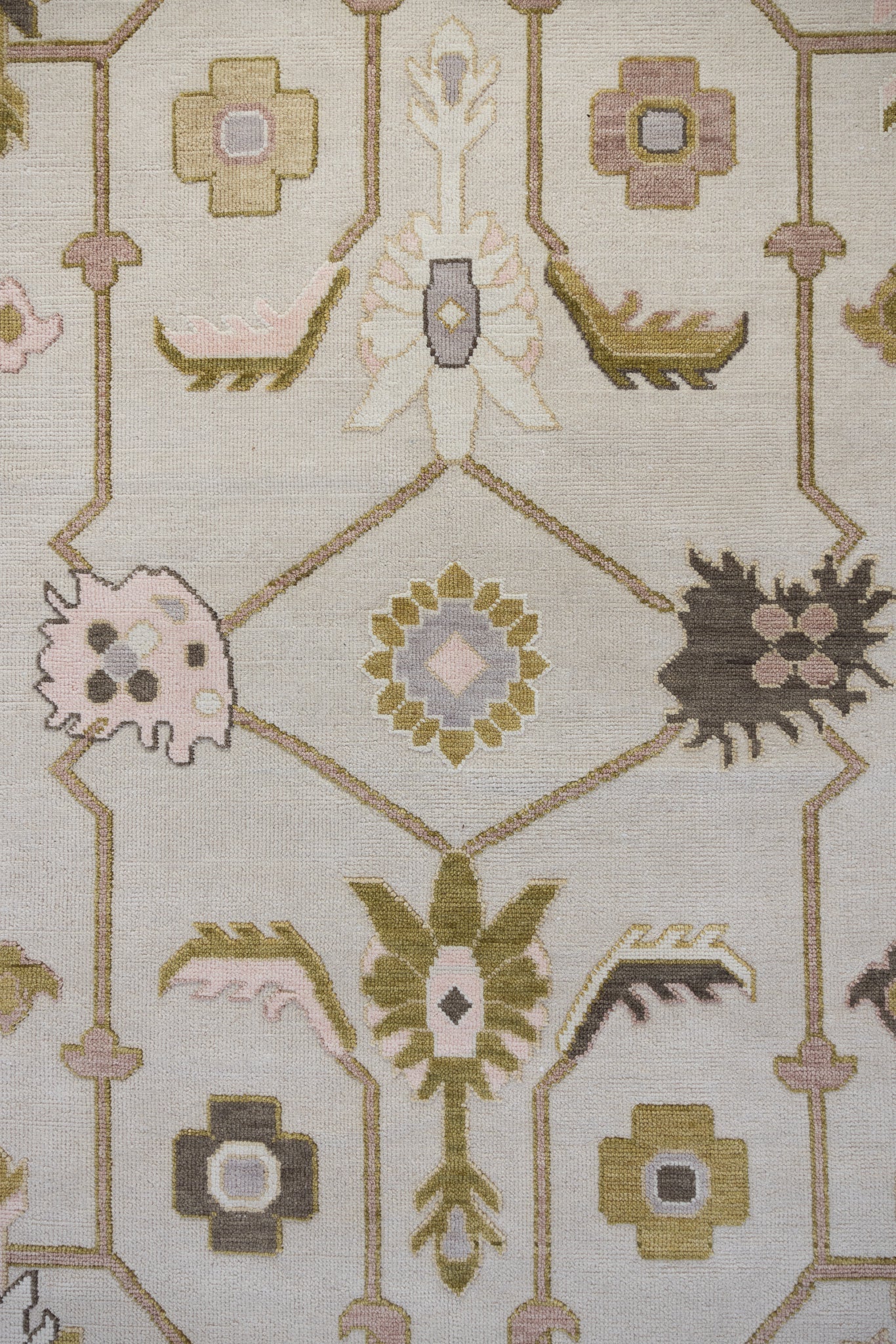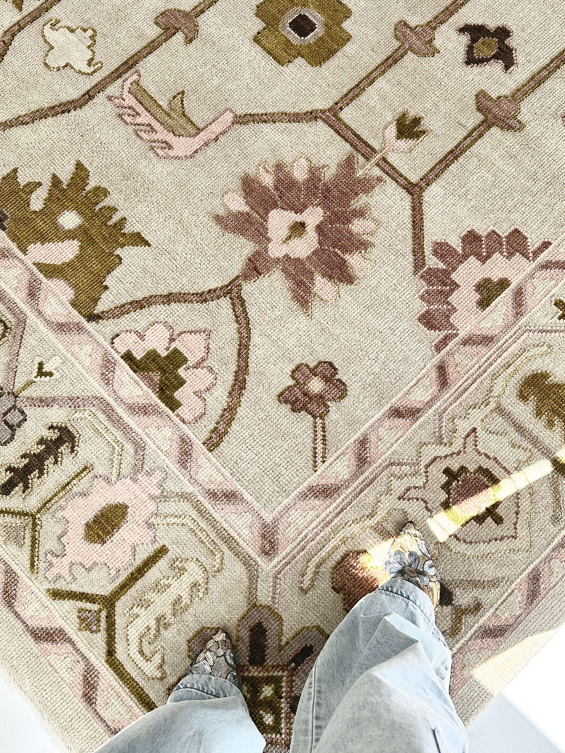 Rich in detail and texture, the Olive rug offers a modern twist on classic design. Handknotted and embossed by skilled artisans, Olive’s raised motifs bring a unique dimensional quality to its elegant pattern. The warm, neutral ground is accented with muted shades of olive green, blush pink, golden mustard, and deep brown—creating a harmonious palette that works beautifully in both traditional and contemporary spaces.