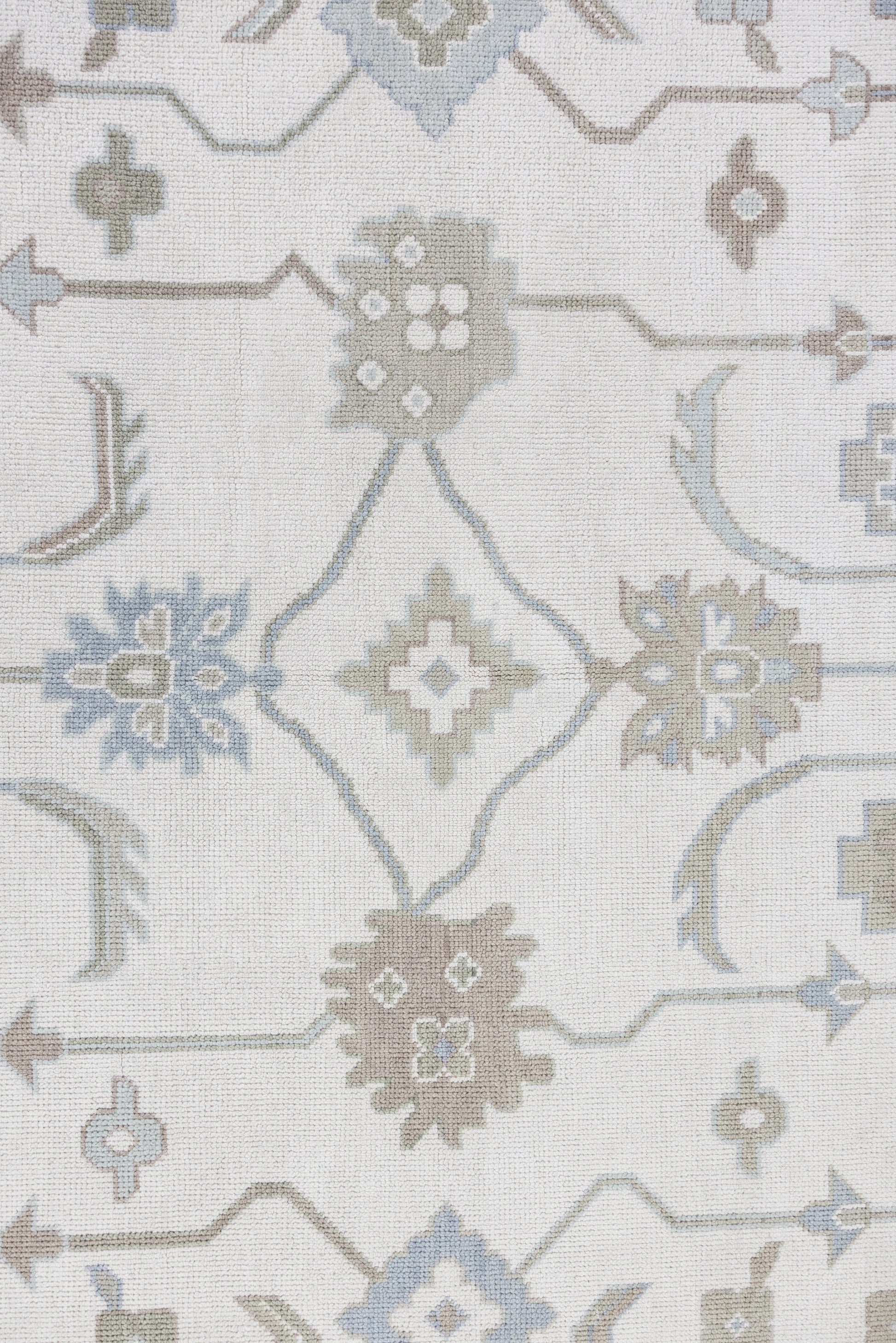 Subtle, serene, and impossibly elegant. Pearl is your whisper-soft foundation piece — hand-knotted in a gentle blend of pale blue, soft ivory, and muted greige. Her tone-on-tone palette creates a calming, sophisticated backdrop that lets your furniture and art shine while adding just enough detail to feel intentional and refined.