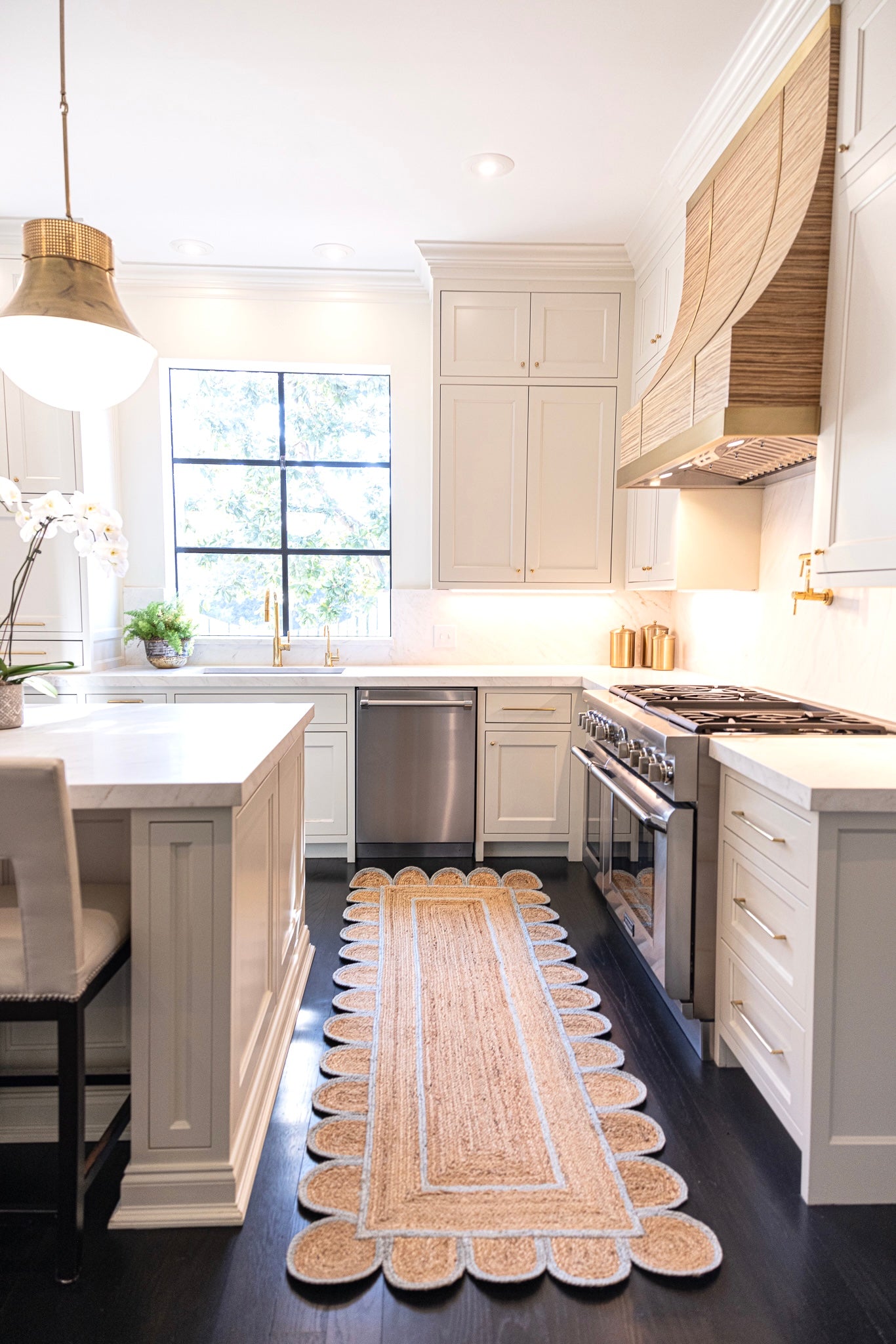 Playful yet timeless, the Sea Blue Scalloped Jute Rug brings organic texture and soft color into your space. Hand-braided from natural jute with sea blue accents, its whimsical scalloped border adds charm to entryways, kitchens, and kids’ rooms alike. Durable and low-maintenance, this rug blends coastal calm with artisanal character.
