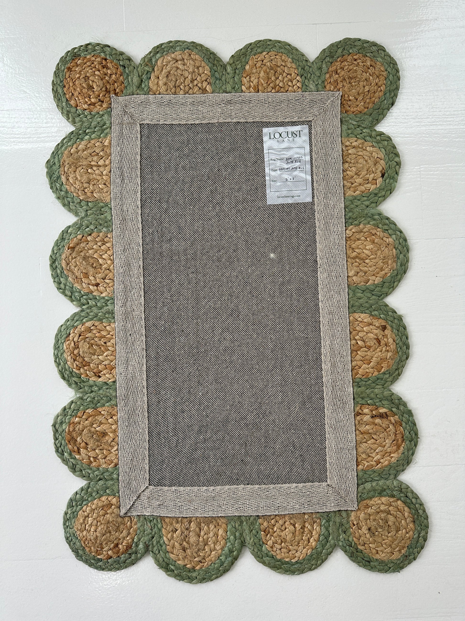 Teal Green Scalloped Jute Mini Rug